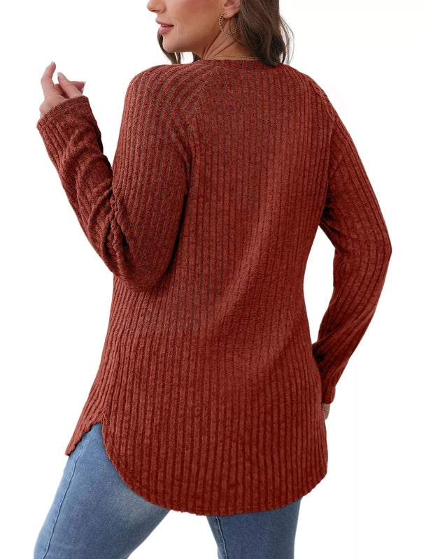 Casual ribbed knit long sleeve tee - elevate your style effortlessly!